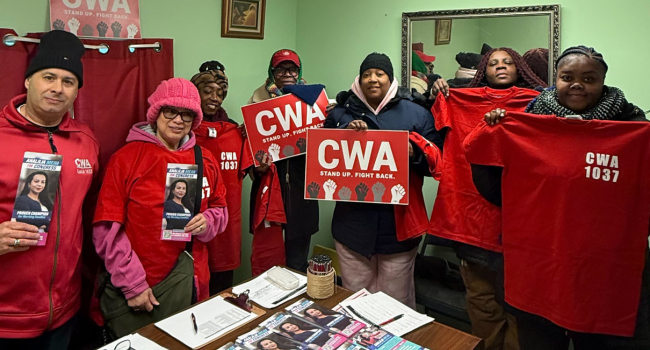 | Tuesday, February 3, 2026Read on the web: From the Desk of the Vice President of CWA District 1“The hard work is just starting, but nurses are good at hard work”: Cayuga Medical Center Nurses Vote to Join CWA!Largest Nurses Strike in NYC History: CWA Stands with NYSNA!First Union Contract for Library Workers in Gloucester County, NJ!Solidarity Fair Welcomes New MembersCWA Urges NY Legislature to Prioritize Union Jobs, Safety Standards in Broadband Work Following Changes to Federal RequirementsCWAers Mobilize in Droves for AT&T Orange Mobility BargainingSpecial Elections in New York and New Jersey in February From the Desk of the Vice President of CWA District 1 ![]() On January 23rd the first General Strike in the United States in more than 80 years was held across Minnesota, endorsed by many labor unions, including CWA Local 7250. The next day, we were confronted with devastating news that ICE agents in Minneapolis killed a peaceful protester, an act captured on video. The victim, Alex Pretti, was a VA nurse and a union member of AFGE Local 3669. He was serving as a legal observer, filming ICE agents—an activity that is fully protected under the Constitution and one that some of our own members in District 1 have carried out.This is a tense and frightening time, and such events understandably provoke strong and differing opinions within our diverse membership. Some may ask why our union should speak out at all. I respect the wide range of personal beliefs among us. At the same time, I firmly believe that our fight for workers—in the workplace, at the bargaining table, and as a labor movement—is inseparable from the fight for safe, healthy communities where people can live, work, raise families, and exercise their constitutional rights without fear, especially from government agencies. As a union, we believe in and fight for a strong democracy. As healthcare costs rise, winter storms intensify, nurses continue to strike for safe staffing, and public dollars increasingly fund ICE operations, two Americans have now lost their lives while exercising their First Amendment rights—the same rights that make our collective action possible. We may disagree on many issues, but we can agree that any loss of life is a tragedy. When a union sibling is killed while exercising protected rights, it hits close to home. I call on all of us to move forward in solidarity, grounded in compassion and shared purpose. When one of us is under attack, all of us are under attack—and together, we must stand up for one another. “The hard work is just starting, but nurses are good at hard work”: Cayuga Medical Center Nurses Vote to Join CWA! On January 15th, after two days of voting, Registered Nurses at Cayuga Medical Center in Ithaca, NY voted overwhelmingly in favor of joining CWA Local 1111.The 350 Cayuga nurses faced down a tough anti-union campaign launched by hospital management and voted 82% in favor of unionizing, joining the roughly 15,000 healthcare workers already represented by CWA throughout New York and New Jersey.“The overwhelming victory by CMC nurses is a shining example of what healthcare professionals can achieve when they join together with a collective voice,” said CWA District 1 Vice President Dennis Trainor. “CMC nurses have repeatedly voiced their urgent desire for a union contract, and it is time for management to join us at the bargaining table and get to work improving conditions for nurses and their patients.” ![]() ![]() Cayuga nurses, recognizing many of the same issues in their hospital that healthcare workers have increasingly sounded the alarm on over the past several years, began organizing in order to better fight for improvements. Since the COVID-19 pandemic, nurses and other healthcare workers have seen increasing short staffing that can leave them caring for an unsustainable number of patients, compromising patient care and worker safety.“The hard work is just starting, but nurses are good at hard work,” said Shane Snyder, In-Patient Wound RN. “We’ve been delivering quality patient care for years while feeling unsupported and burnt out, and I’m excited to see what we can do with our union behind us. We are tenacious, we are strong, and we are ready to start bargaining our contract.”“My career as a nurse is something that I’ve always taken such pride in. Now, I have another part of the job to be so proud of,” said Morgan Downing, Cardiac Catheterization RN. “We are laying the groundwork for the generations of nurses to come after us, and we’re already hearing from other medical professionals inspired to join us. I am so excited to have my seat at the table alongside my fellow nurses to start bargaining for our first contract. We are united and ready to continue to advocate for ourselves, our patients, and our community.” Last week, 37 nurses in the Hematology and Oncology (CHOA) and Surgicare units at CMC also won voluntary recognition from the hospital! Largest Nurses Strike in NYC History: CWA Stands with NYSNA!![]() ![]() On January 12, after months of tough bargaining, 15,000 members of the New York State Nurses Association (NYSNA) made the difficult decision to go out on strike at three of the biggest, wealthiest hospital systems in New York City.The workers are on strike at several Montefiore, Mount Sinai, and NewYork Presbyterian facilities in the Bronx and Manhattan over patient safety, safe staffing, workplace violence, and healthcare for the workers.CWA members from Locals 1101, 1104, 1109, 1180, and others have been out in force to walk the picket lines alongside NYSNA members over the past week, and we will continue to support our NYSNA family until they win every single contract they—and our communities who rely on their care—deserve! On January 30th Billy Gallagher, CWA District 1 Assistant to the Vice President, spoke at a joint labor press conference at Columbia Presbyterian alongside leaders from the NYC Cen
