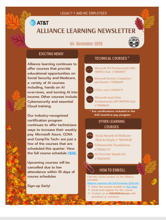 Please see the attached Alliance Learning newsletter and upcoming course list for November. Be
